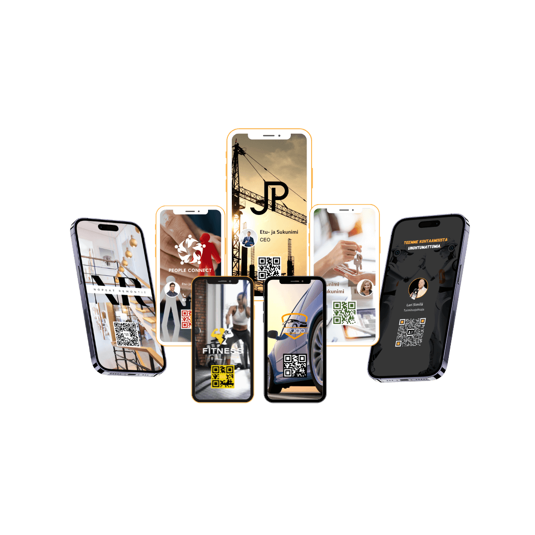 Avausmaksu sisältää digitaalisen käyntikortin tekemisen brändinne mukaisesti henkilökohtaisilla tiedoilla. Toimitamme myös QR-koodin erillisenä tiedostona, joten sitä voi halutessaan hyödyntää muissakin materiaaleissa.