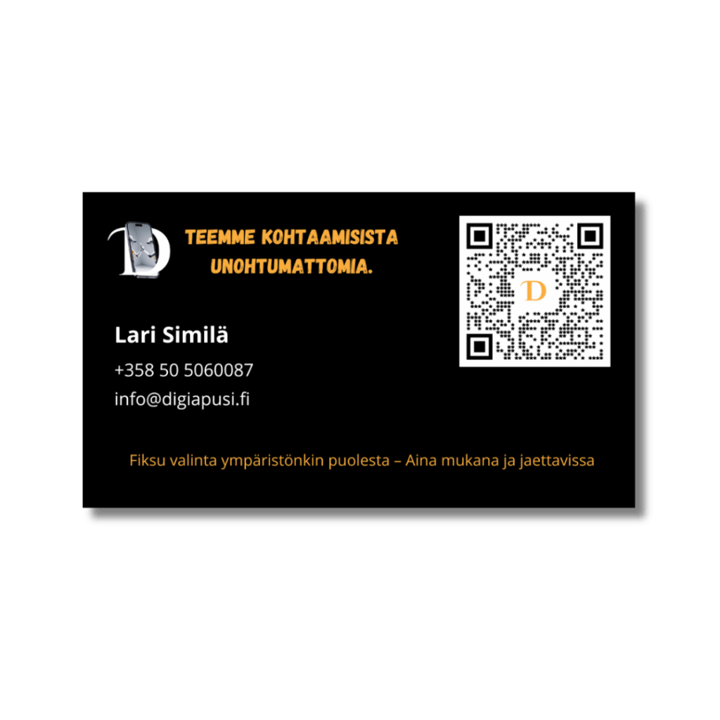 Saat meiltä perinteisen käyntikortin, johon on liitetty Digicard ominaisuudet.